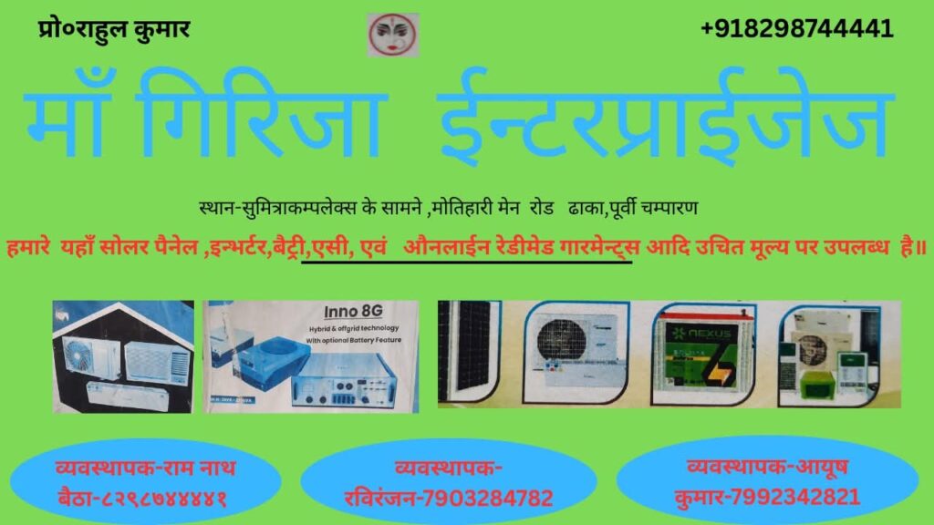 Maa Girija Enterprises Near TB Hospital Maa Girija Bhawan Islampur Dhaka , Patna, Bihar – 845418 भारत